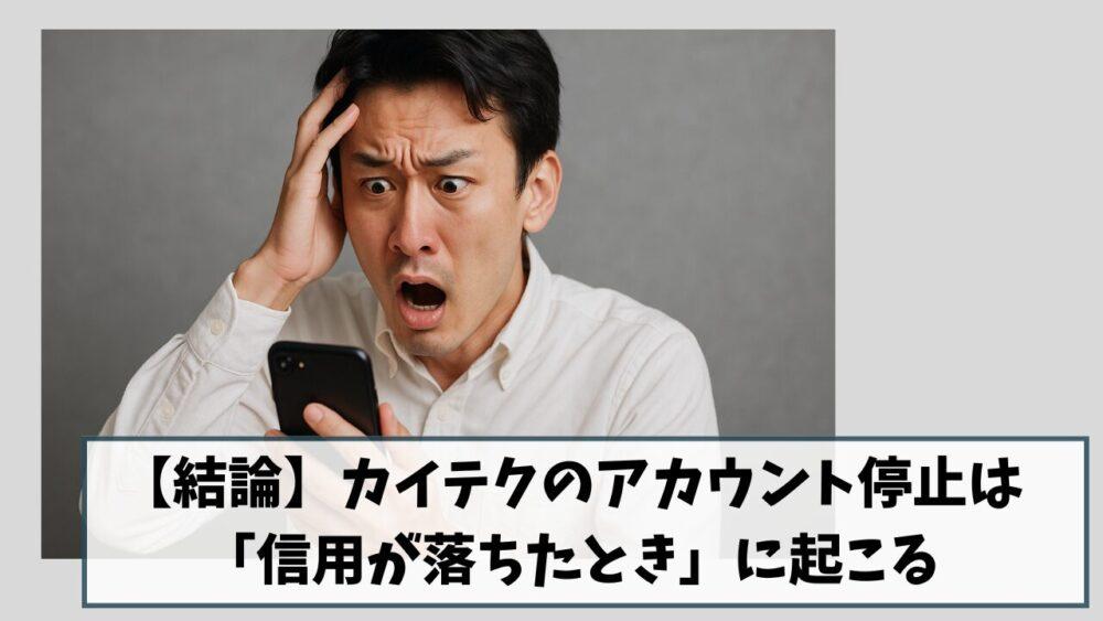 【結論】カイテクのアカウント停止は「信用が落ちたとき」に起こる