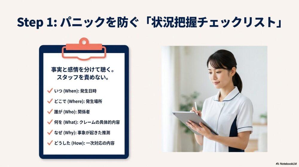 - 【STEP2:事実確認と安全報告】
