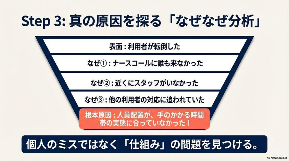 - 【STEP3:原因分析と再発防止策の提示】