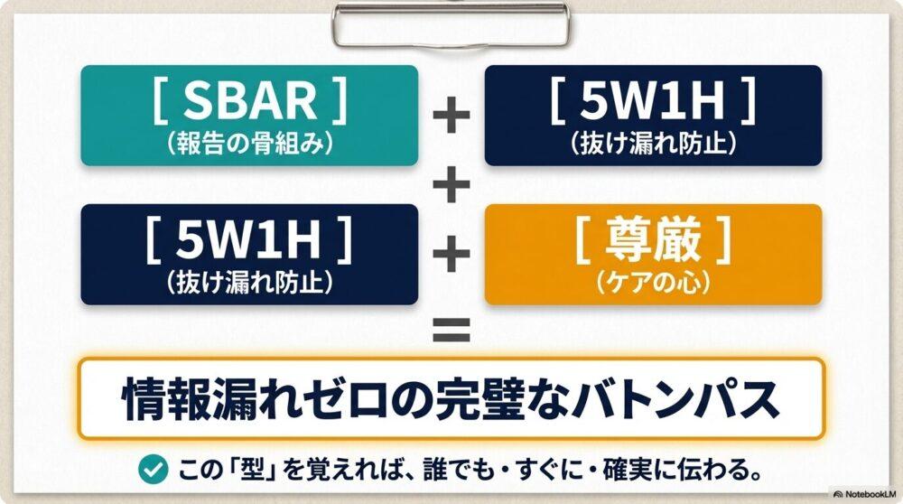 【結論】情報漏れゼロの申し送りは「SBAR+5W1H」で誰でも再現できる