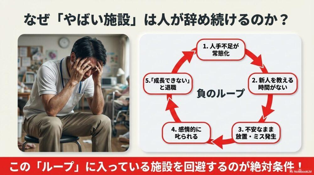 このループに陥っている施設は、 常に人手不足で、雰囲気がギスギスしがちです。
