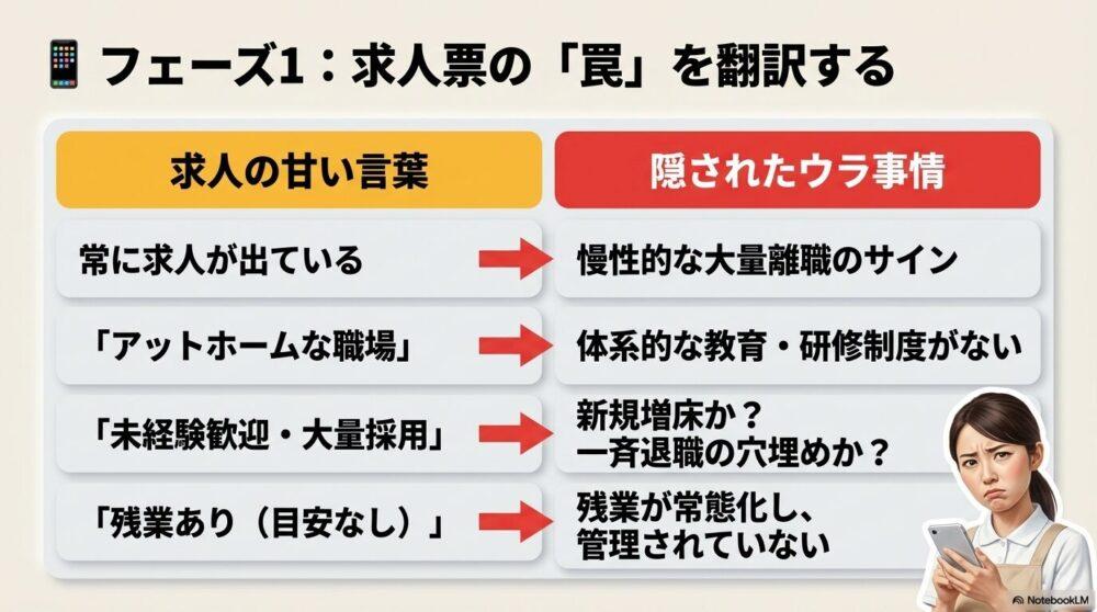 求人票の裏側、見学の一瞬、面接官の言葉の端々。