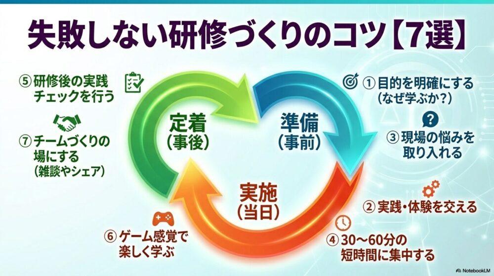 ポイント:「学んで終わり」ではなく、「現場に定着させる仕組み」を作る