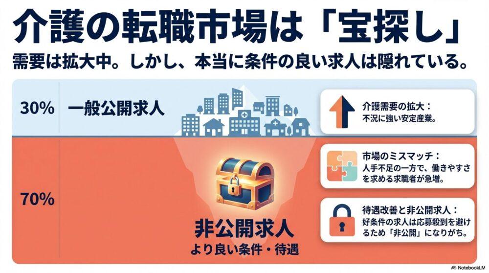 介護職の転職市場は、急速に変化する高齢化社会の中で、まるで「宝探し」のような側面があります。