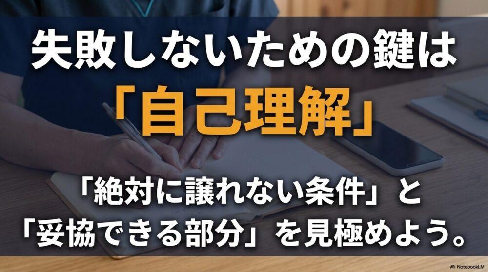 情報を集めて小さく行動することが不安を減らす近道です。いきなり応募しなくても大丈夫。求人を見る、条件を書き出す、自分の不安を整理する、そんな小さな一歩から始めれば十分です。 - 自己理解は、転職で本当に必要ですか?