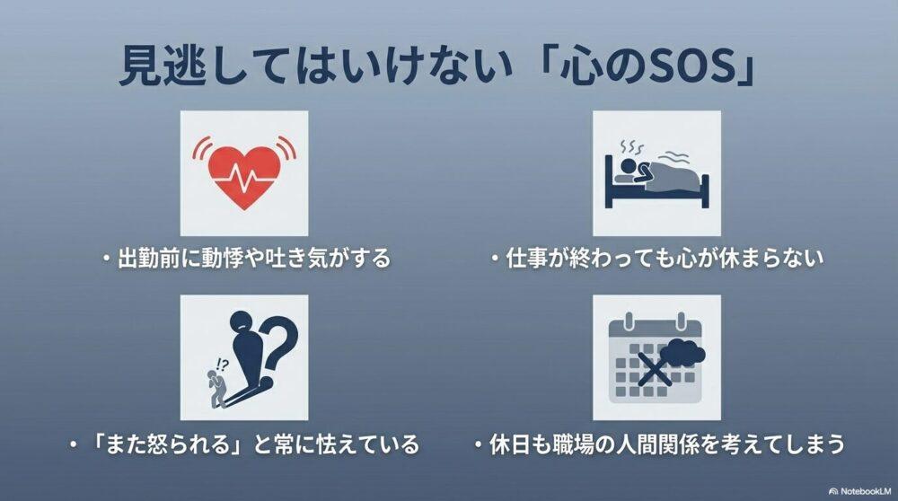 これらのサインは、決して「気のせい」や「甘え」ではありません。
