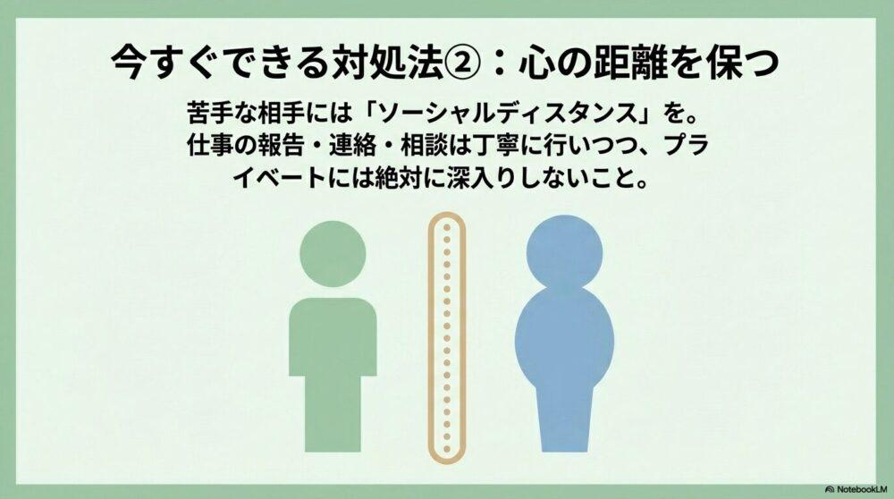 苦手な相手とは、意識的に「心の距離」を保つことも重要です。