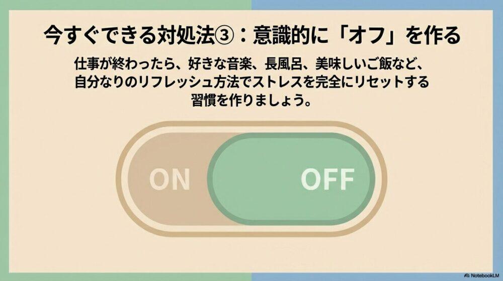 家に帰っても、仕事中の嫌な出来事がフラッシュバックしたり、上司の言葉が頭から離れなかったり…。