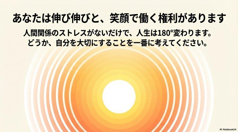 人間関係のストレスがないだけで、人生が180°変わります。