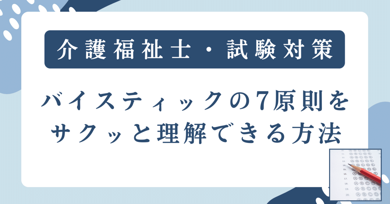 直接「バイスティックの7原則」と出なくても、支援の考え方や事例問題の判断で問われることがあります。理解しておくと選択肢を切りやすくなります。
