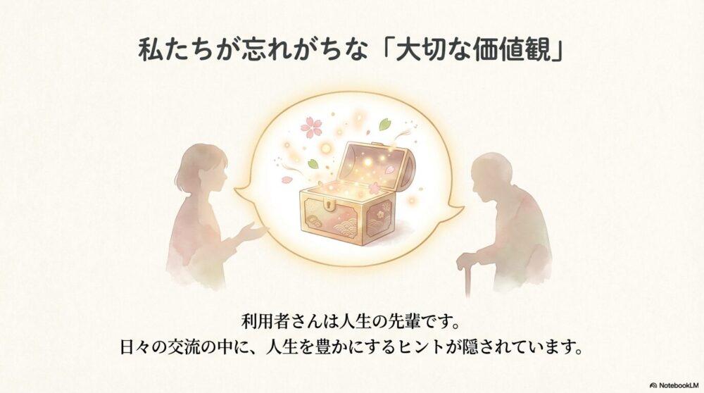 介護現場では、私たちが普段忘れがちな「大切な価値観」を教えてもらえるのです。