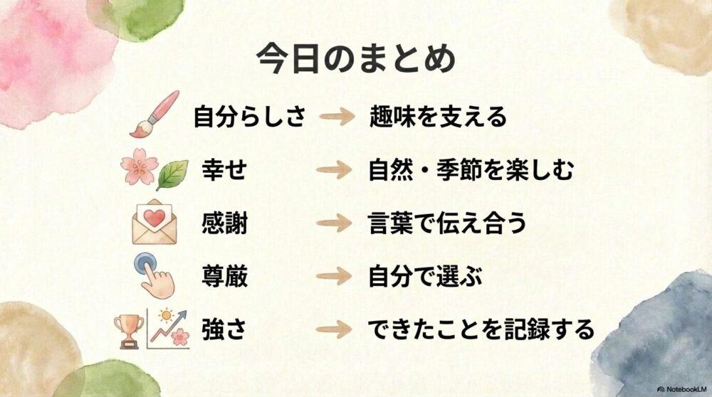 日々の中で幸せを見つける力は、人生を豊かにする大きな力になります。